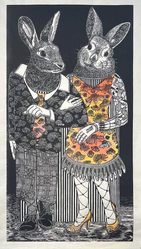 I've participated in 'Really Big Prints' held on the UW-Manitowoc campus (2014, 2016, 2018, 2021, 2023 & 2025) and 'The Exquisite Corpse' event and exhibit at the Hardy Gallery in Ephraim, Wisconsin (2015) and the Wisconsin Alphabet Project (2017).